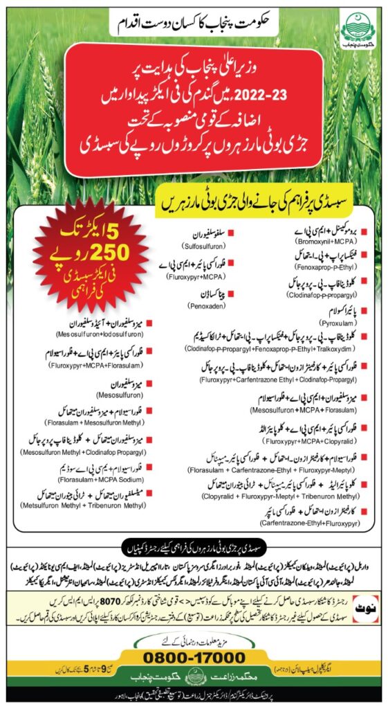 گندم میں جڑی بوٹی مار زہروں پر سبسڈی کیسے حاصل کر سکتے