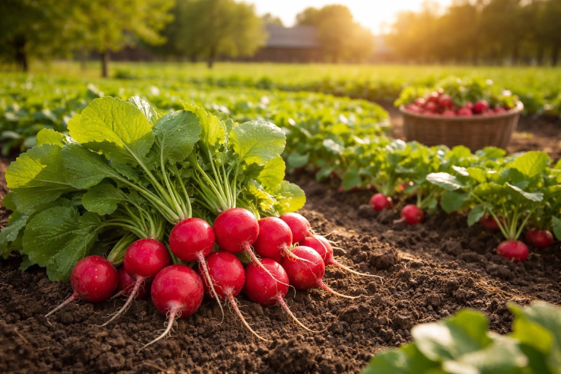 | Radishes | 25 to 30 | 5–7 tons/acre | Cherry Belle and White Icicle | Ideal for intercropping |