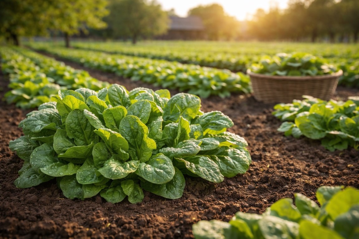 | Spinach | 28 to 40 | 6–8 tons/acre | Bloomsdale and Space | Cool-season crop |