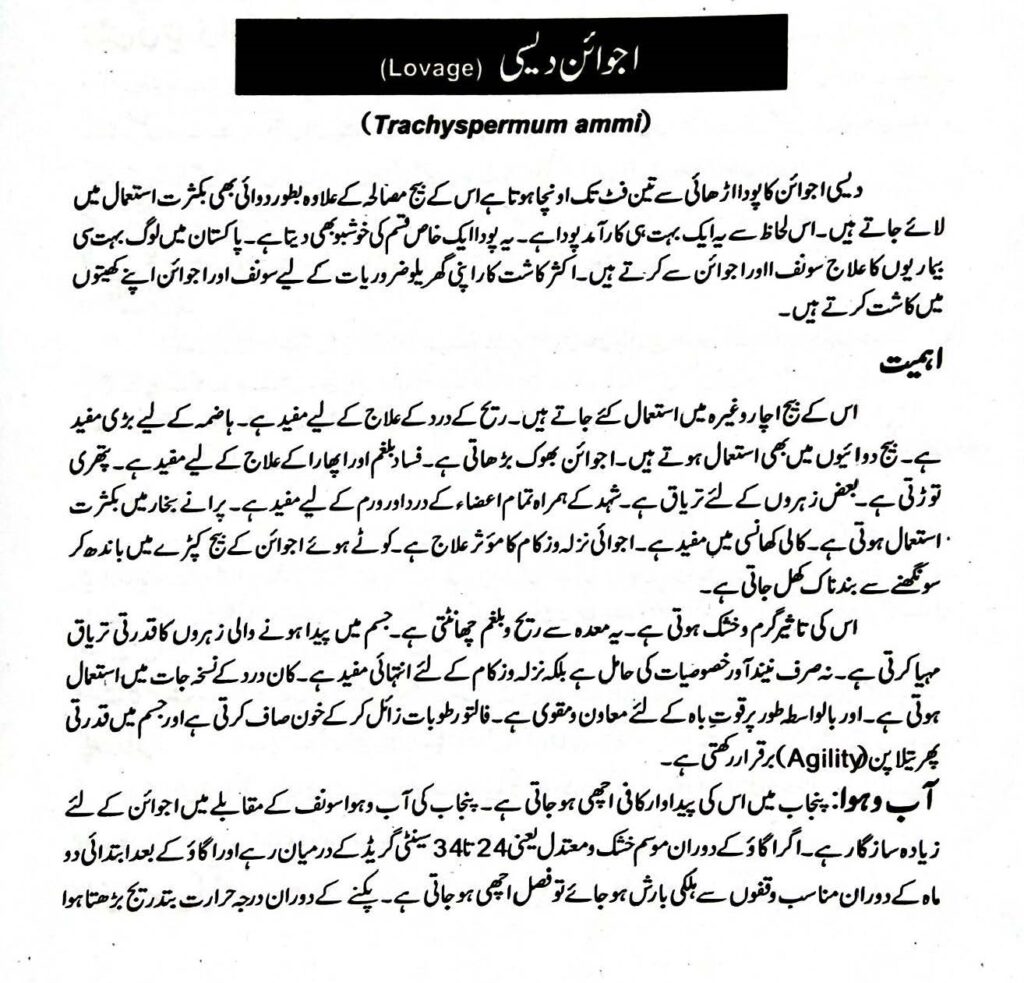Source: Ajwain Desi, Cultivation of Medicinal Plants, Directorate of Agriculture Information, Punjab, Pakistan