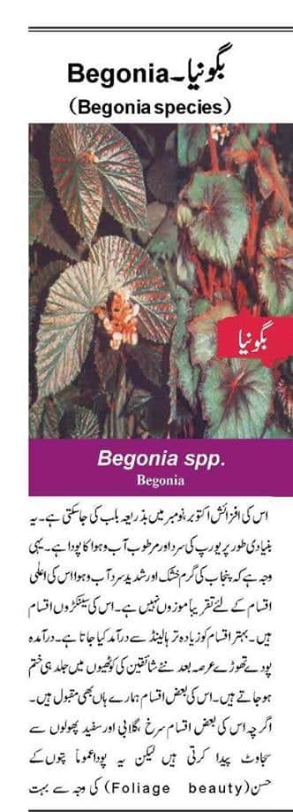 Find the literature on the cultivation of Begonia plant in Pakistan.
