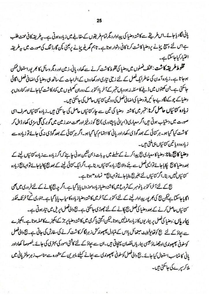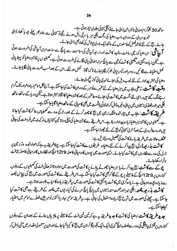 Source: Dhania – Coriander / دھنیا, Adviati Paudon ki Kasht, Directorate of Agriculture Information, Punjab, Pakistan