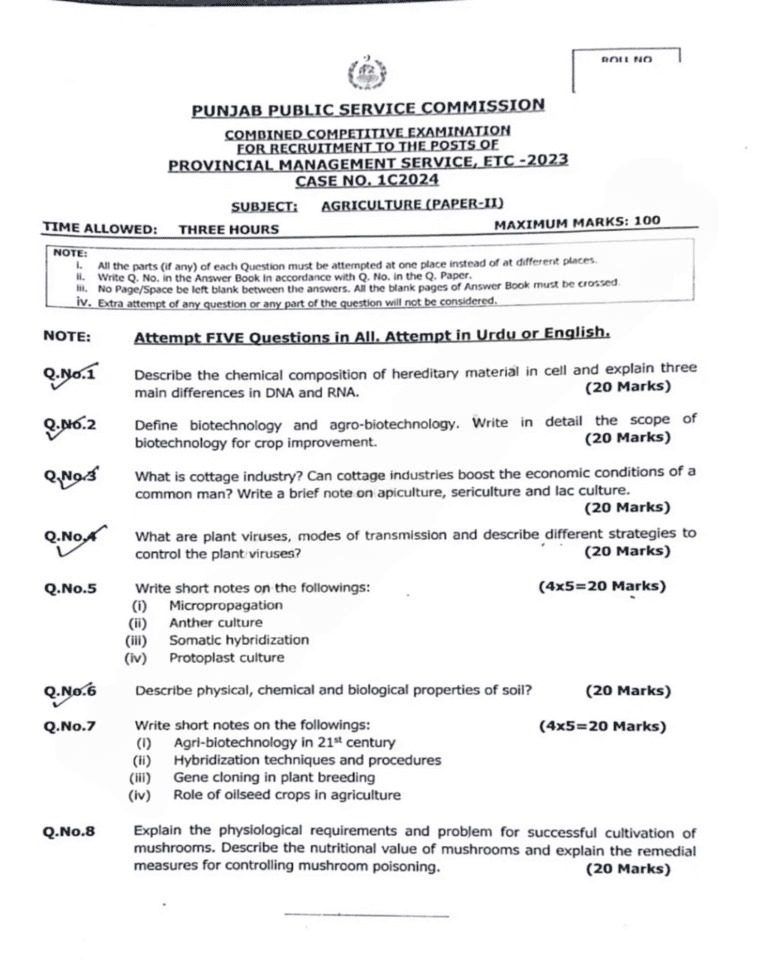 PMS Agriculture Past Papers 2024